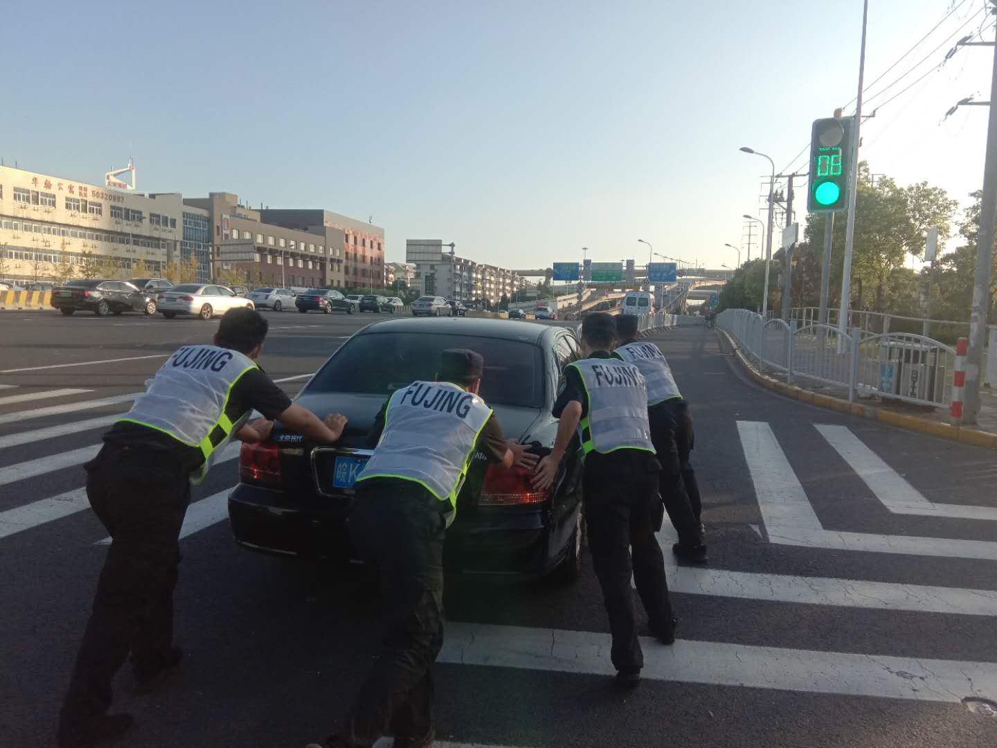 9月27日,公司駐金橋治安派出所輔警項目隊員楊俊國在上班途中幫助一熄火轎車車主。