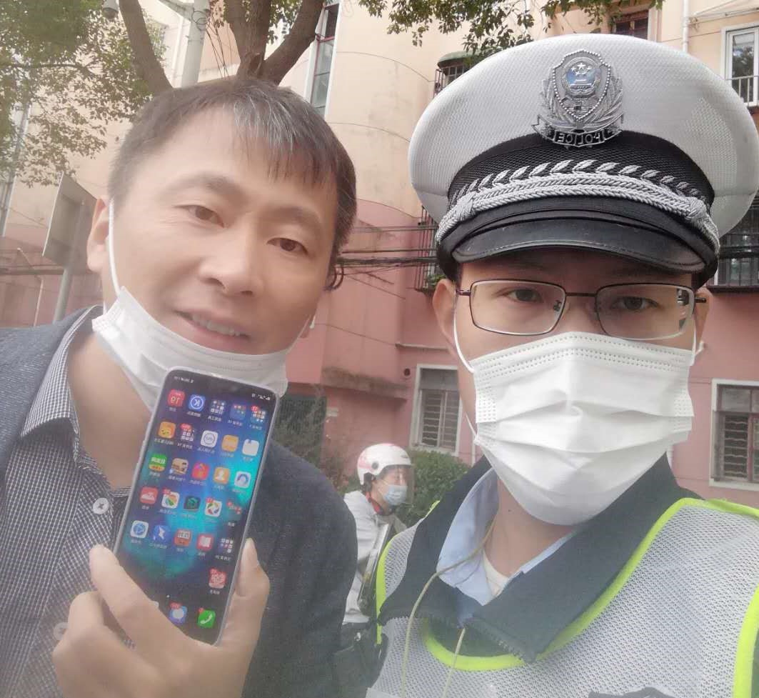 10月19日,宗保公司駐虹橋交管輔警項(xiàng)目隊(duì)員劉偉將撿到的一部手機(jī)歸還失主。