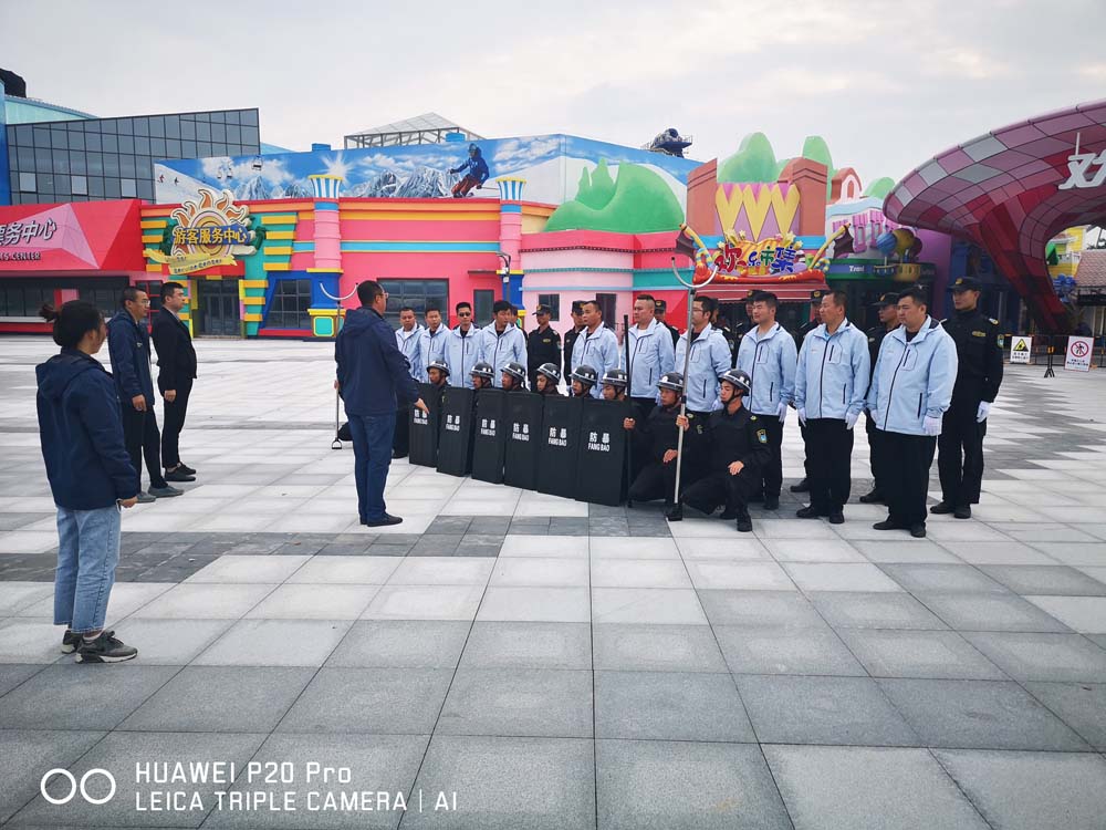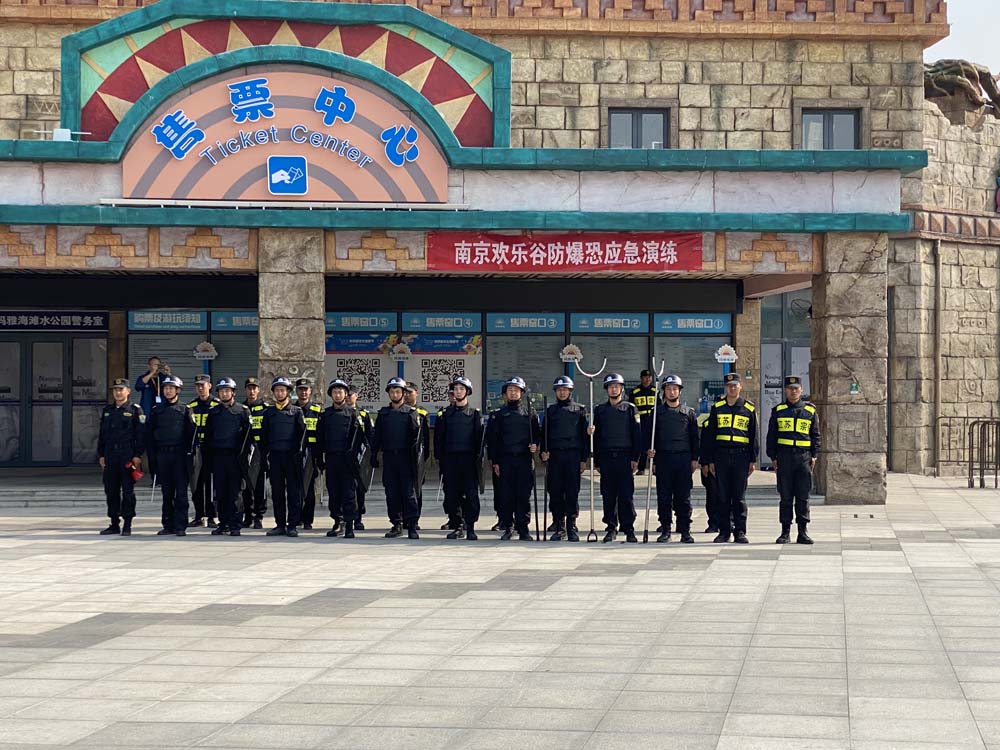 當(dāng)天,南京市棲霞派出所副所長(zhǎng)張玉、南京華僑城歡樂(lè)谷副總經(jīng)理董本麗等一行,現(xiàn)場(chǎng)觀摩指導(dǎo)公司駐歡樂(lè)谷項(xiàng)目隊(duì)員防暴恐應(yīng)急演練。