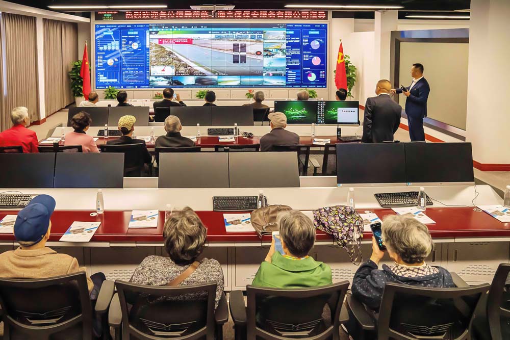 老領導們首先來到公司運營指揮中心,觀看公司宣傳片,了解公司的運營情況;參觀了公司基地,隨后在公司會議室進行座談交流。