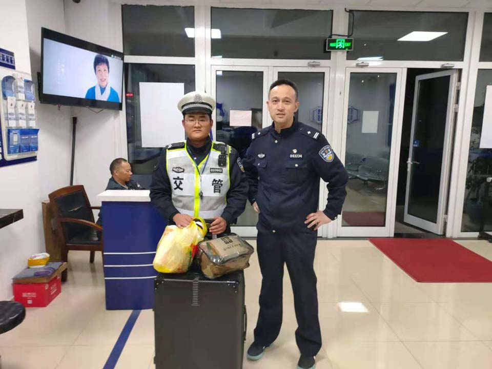 20分鐘后,失主趕來認(rèn)領(lǐng),在核對信息無誤后,隊員將公文包歸還失主,失主對宗保隊員拾金不昧的行為贊不絕口。