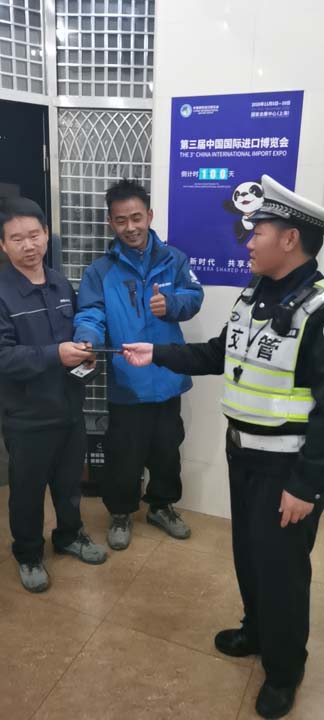 半小時過去了,仍無人前來尋找,溫玉林便上報帶班骨干,將手機(jī)送交到虹橋派出所,并向值班民警說明情況。之后,溫玉林返回崗位繼續(xù)執(zhí)勤!