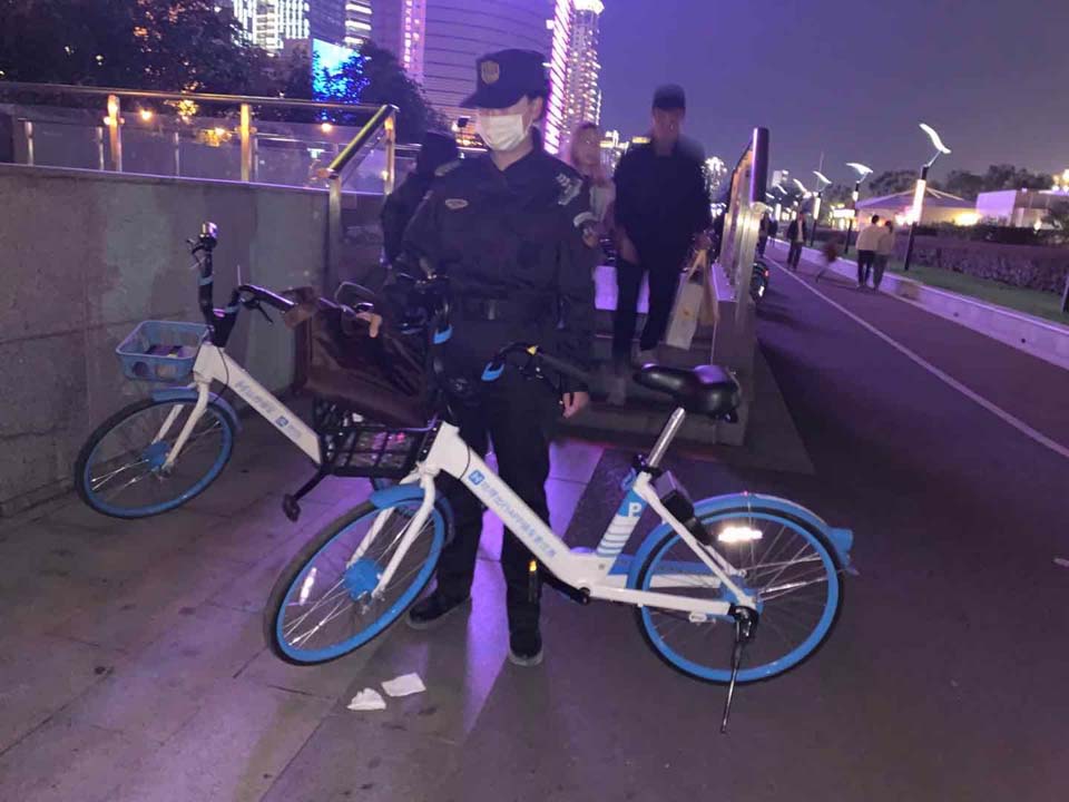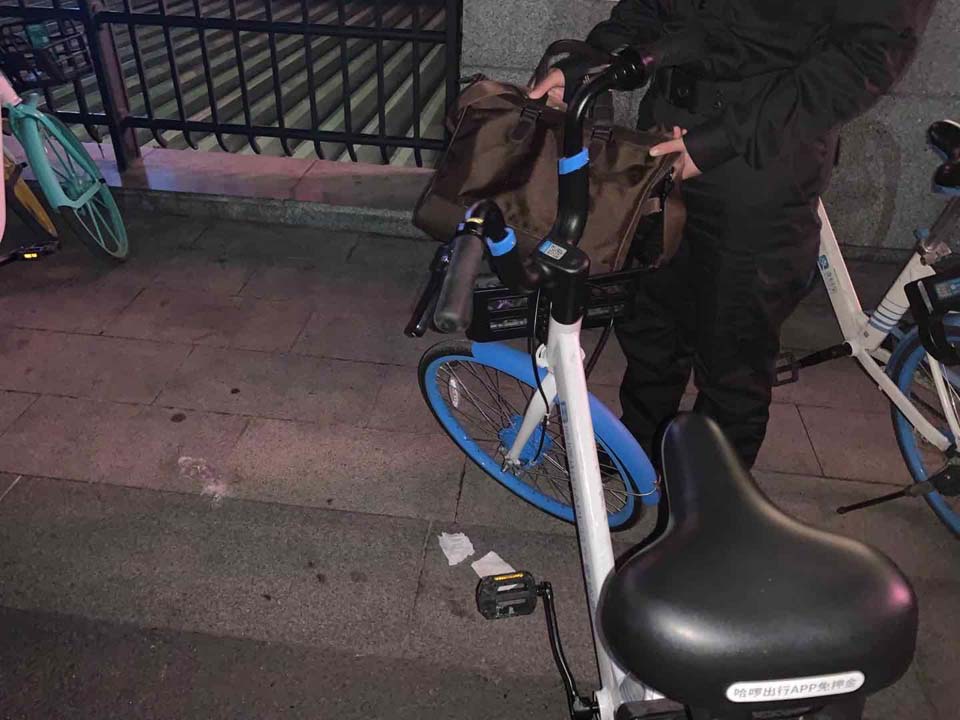 當(dāng)天20:21,許萌、鮑瑞芳和梁月香巡邏至濱江公園汽車餐廳附近時,在共享單車車筐內(nèi)發(fā)現(xiàn)一咖啡色公文包無人認(rèn)領(lǐng),便打開執(zhí)法記錄儀拍照取證,包內(nèi)有一臺筆記本電腦和一根數(shù)據(jù)線。