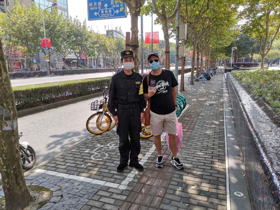 半小時后,失主打來電話約定好碰面地址。不一會兒,一個外國友人急匆匆地趕過來,核對無誤后隊員將手機(jī)交還失主。失主拿到手機(jī)后,對宗保隊員一再表示感謝。