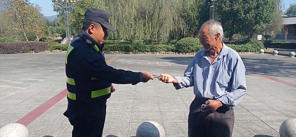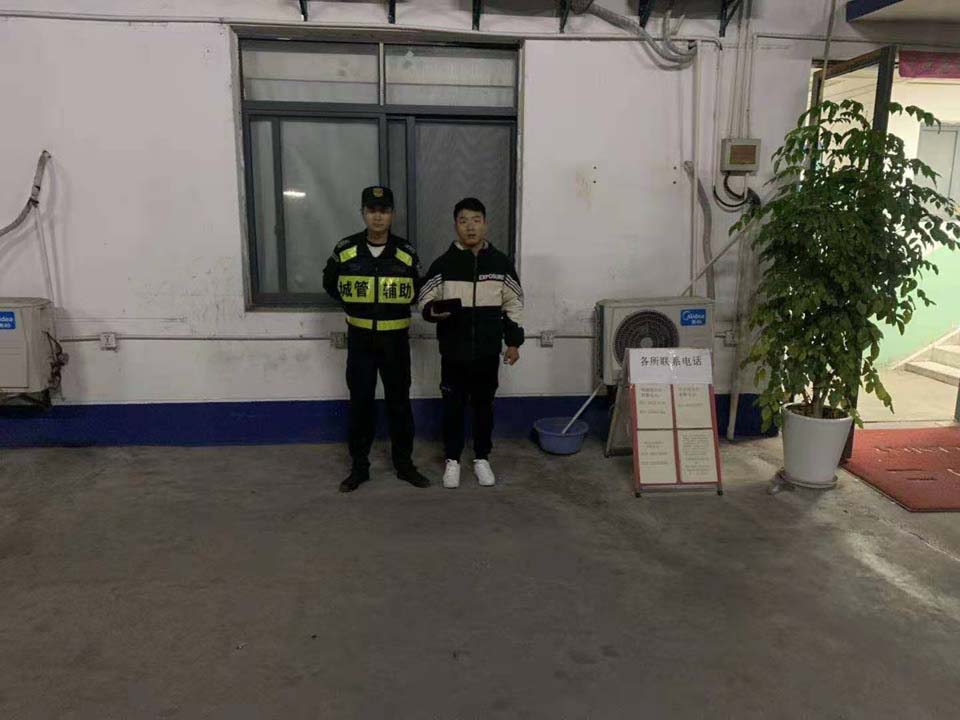10月30日,宗保公司駐周浦市容項目隊員楊珂賀撿到錢包歸還失主,獲得好評。