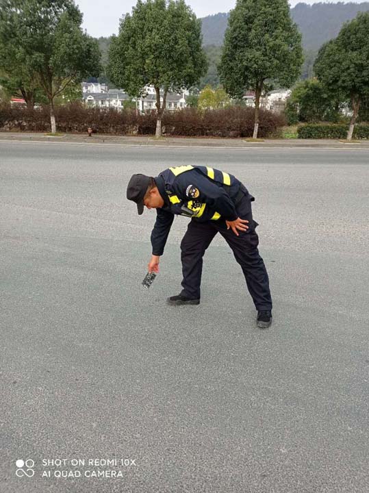 當(dāng)天18:00左右,楊昌勝巡邏至周祝公路康新公路路口時,撿到一部華為手機(jī),立刻上報當(dāng)班組長,并將手機(jī)上交給項目負(fù)責(zé)人。