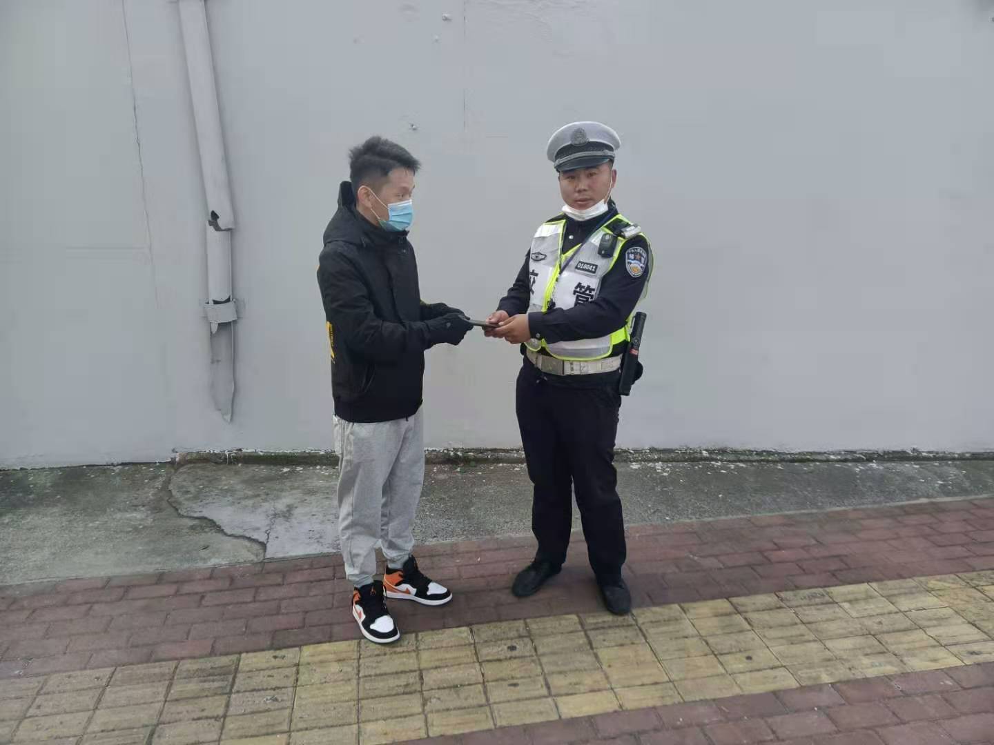 15分鐘后,一男子匆匆趕到現(xiàn)場。經(jīng)核對確認(rèn),隊員將手機(jī)歸還失主,失主對宗保輔警隊員拾金不昧的行為一再表示感謝。