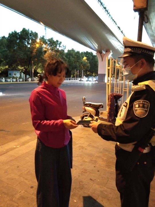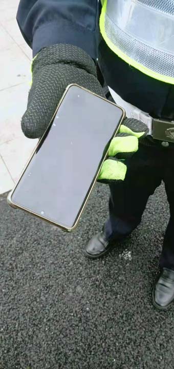 當(dāng)日16:45左右,王中坦在滬閔路報春路口值勤時撿到一部手機(jī),因手機(jī)設(shè)有開機(jī)密碼,無法獲取失主的聯(lián)系方式,便在路口邊執(zhí)勤,邊等待失主聯(lián)系。