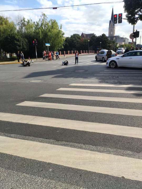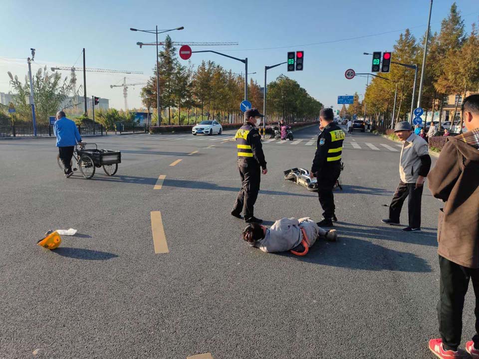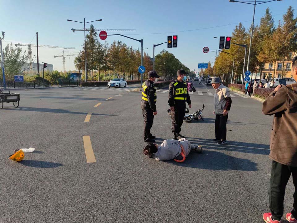 當(dāng)天7:30左右,王偉偉巡邏至東溝北路東溝路附近,發(fā)現(xiàn)路口發(fā)生交通事故—一轎車與電動車相撞,轎車車主正在查看騎電動車傷者情況,并且已經(jīng)撥打了120和110電話。