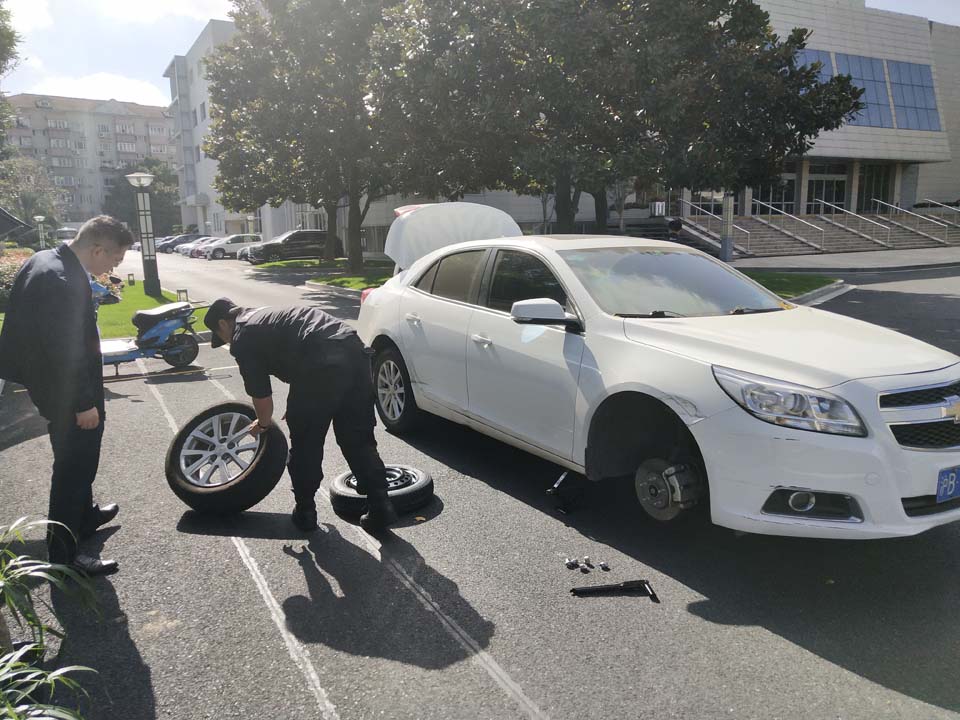 車輛爆胎渾不知   幫助換胎避險情——市委黨校項目隊員幫助爆胎車主更換輪胎
