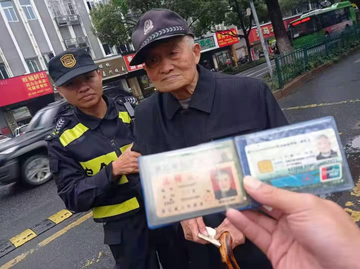 確認(rèn)老人沒有受傷后,隊員將老人從地上攙扶起來。余威詢問老人家住在哪里,有沒有家里的聯(lián)系方式,老人說了半天,也沒說明白,拿出的證件上也沒有具體的地址。