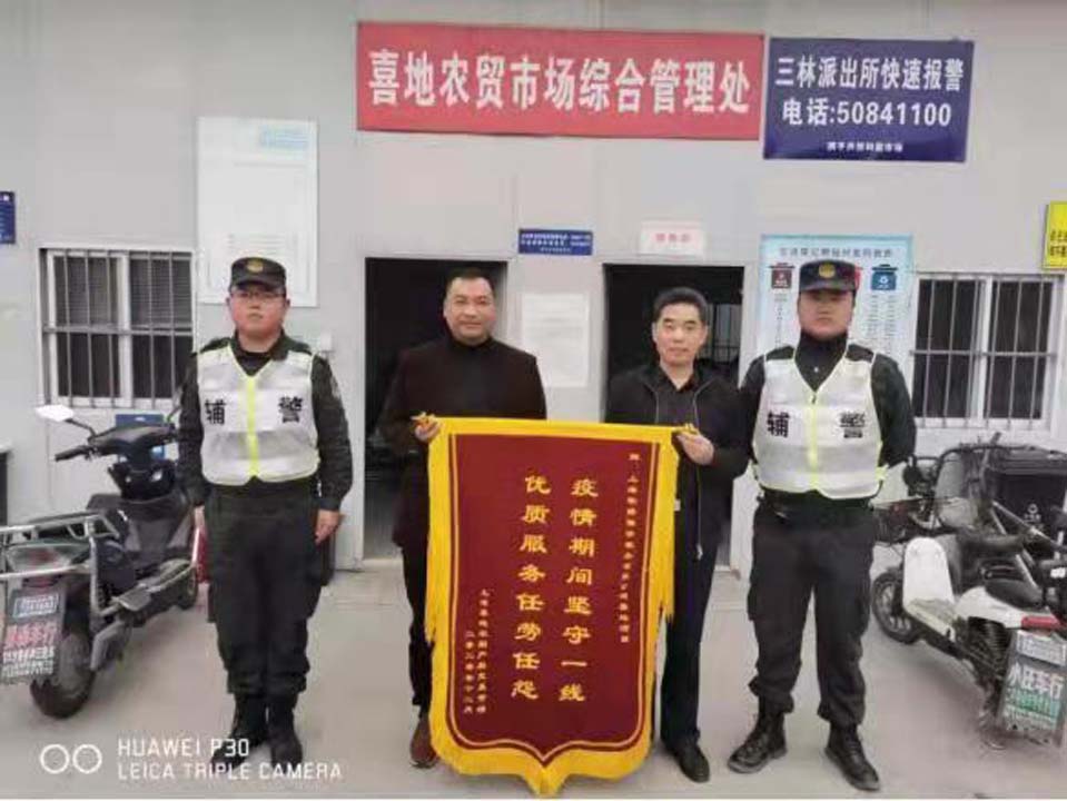 12月7日,喜地農(nóng)貿(mào)市場黨委書記朱福天將一面繡有“疫情期間堅守一線,優(yōu)質(zhì)服務任勞任怨”的錦旗送到宗保公司駐三林喜地農(nóng)貿(mào)市場項目負責人的手中,對宗保隊員在疫情防控期間的優(yōu)質(zhì)服務表示誠摯的感謝。
