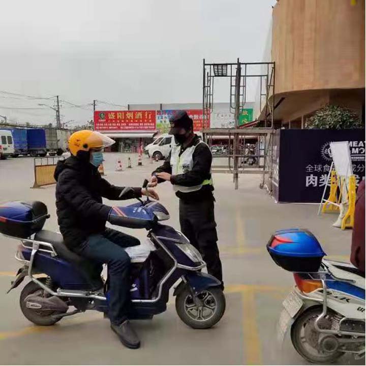 喜地農(nóng)貿(mào)市場作為浦東最大的農(nóng)貿(mào)市場,攤販多、人員密集、流動量大,一直都是疫情防控的重點區(qū)域、防控難點。自疫情暴發(fā)以來,喜地農(nóng)貿(mào)市場項目隊員響應政府的號召,按照喜地農(nóng)貿(mào)市場的要求,嚴格落實疫情防控措施,風雨無阻嚴把農(nóng)貿(mào)市場大門關(guān),對進入市場人員逐個測溫、逐個驗碼,對進入車輛逐車消毒、逐車篩查,牢牢筑起第一道防線。同時,加強菜場巡查,時刻提醒市場人員戴口罩,督促攤位進行清洗、消毒,為農(nóng)貿(mào)市場的安全穩(wěn)定正常運營提供了有力保障。